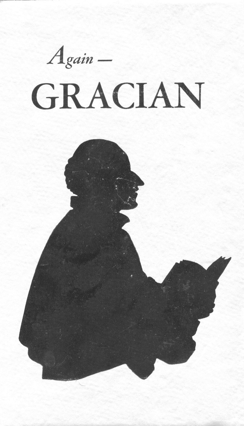 With these thoughts in mind, I have, for the second time, turned to Gracian. Baltasar Gracian y Morales, as you know, was a Spanish philosopher and monk whose understanding of human nature seems to have been as many faceted as human nature itself. Born in a village in Calatayud circa 1601, he became a member of the Society of Jesus when he was eighteen, and entered into a period of contemplation and study. He has been enormously popular, but criticism of him ranges from lavish praise to stinging denunciation. His works, twelve volumes in all, which have been translated into many languages, reflect the satirist, the wit, the egoist, the humanitarian, and the psychologist, but through them all is a dynamic awareness of human relationships. His is a shrewd mind with an analytic faculty, and he is a vivid reminder that human nature has not changed in huildreds of years.