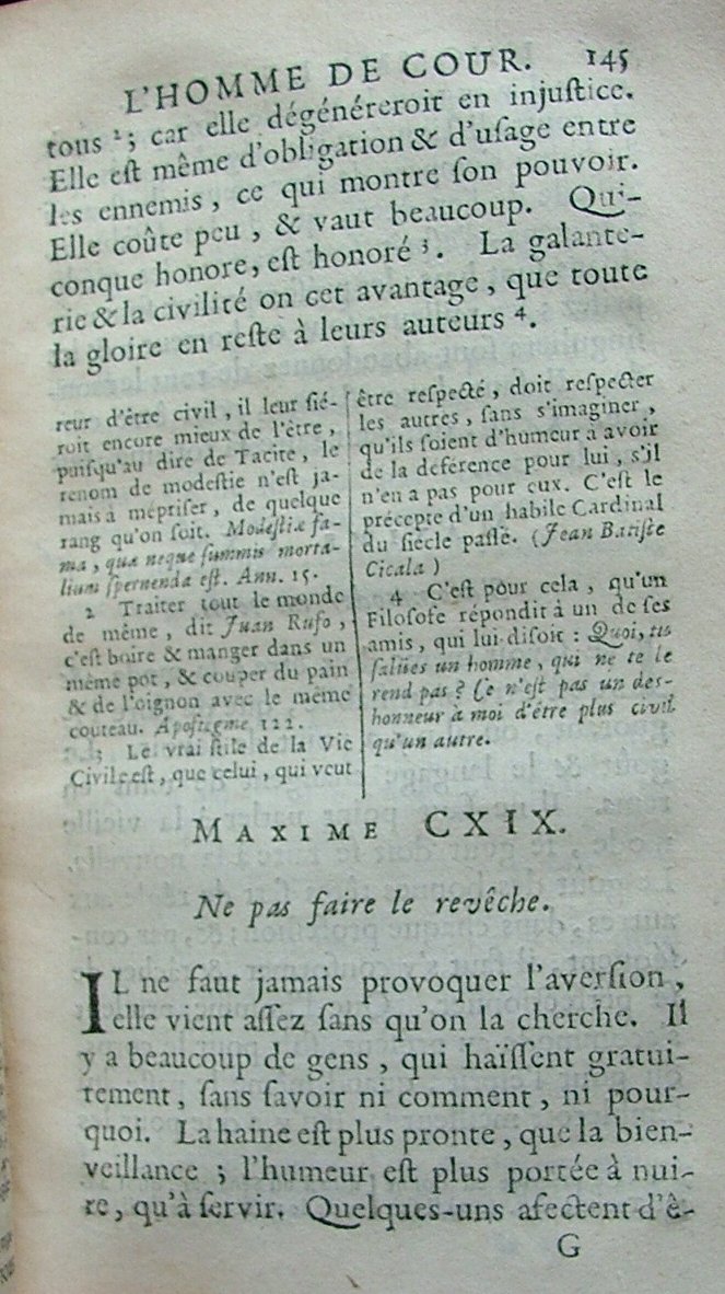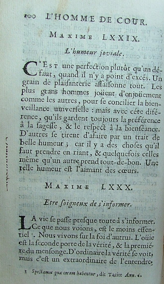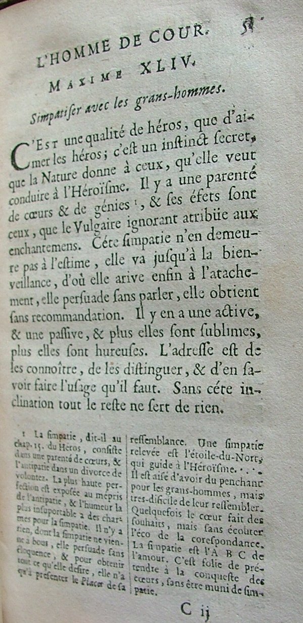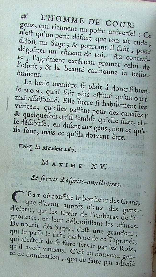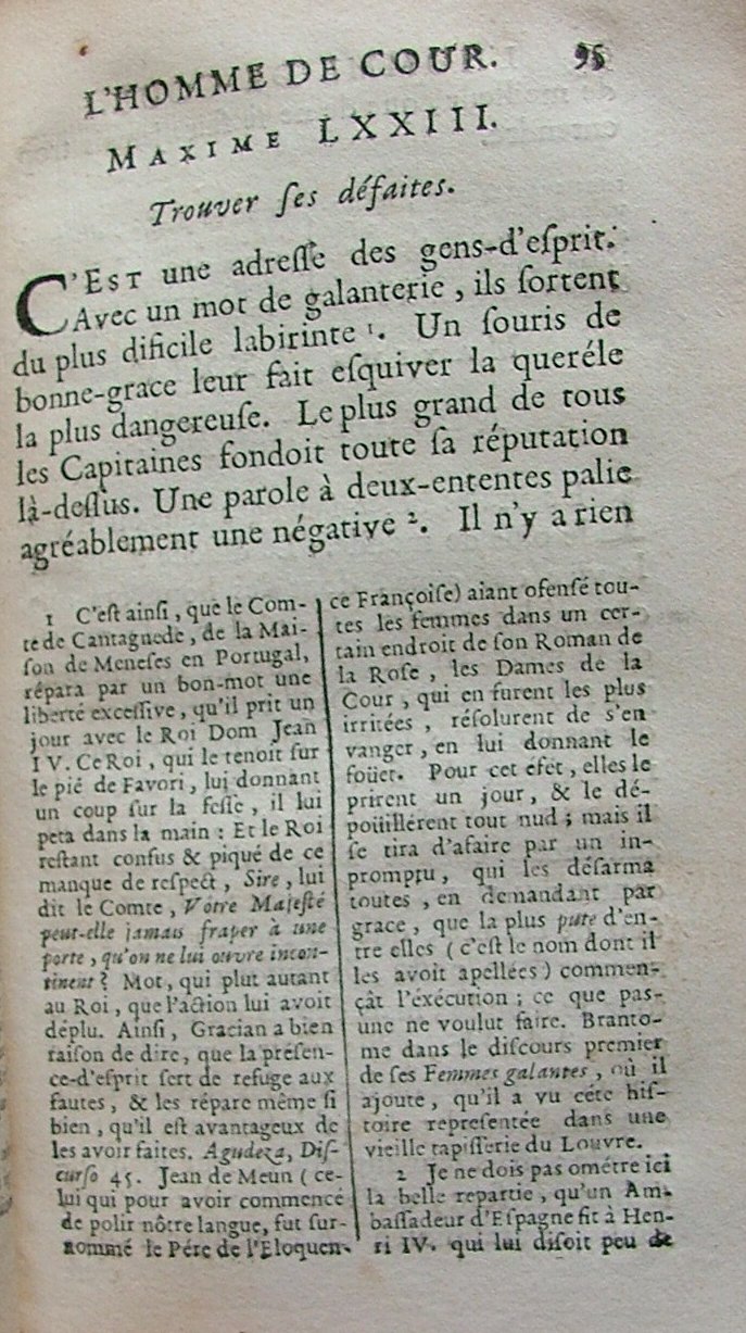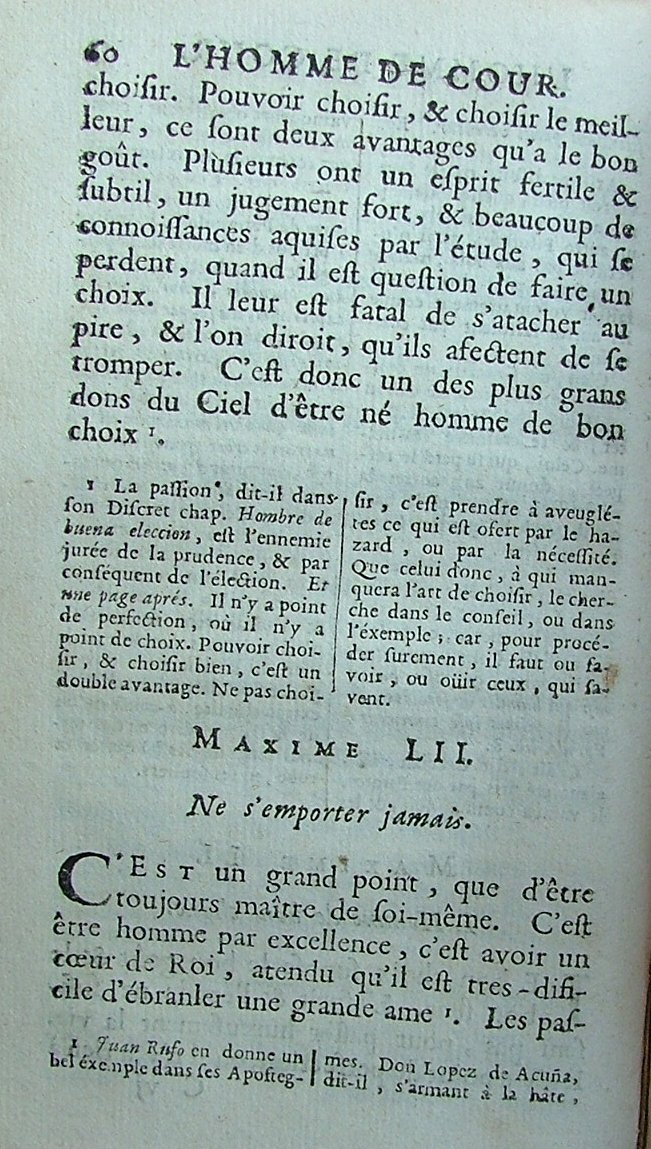 JPG images of L'Homme de Cour de Baltazar Gracian (French translation of the Art of Worldly Wisdom) Traduit & commente. Par le Sieur Amelot de la Houssaie, ci-devant Secretaire de l'Ambassade de France a Venise. Troisieme Edition, revue and corigee. A Paris. Chez la Veuve-Martin, and Jean Boudot, rue Saint Jaques, au Soliel d'or. M. DC. LXXXV (1685) Avec Priviledge du Roi