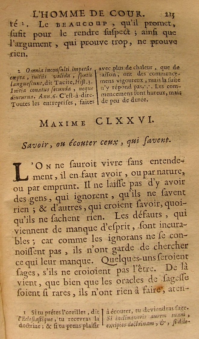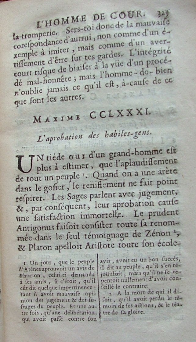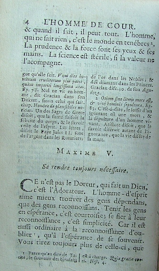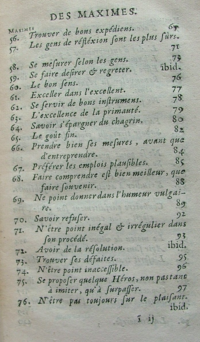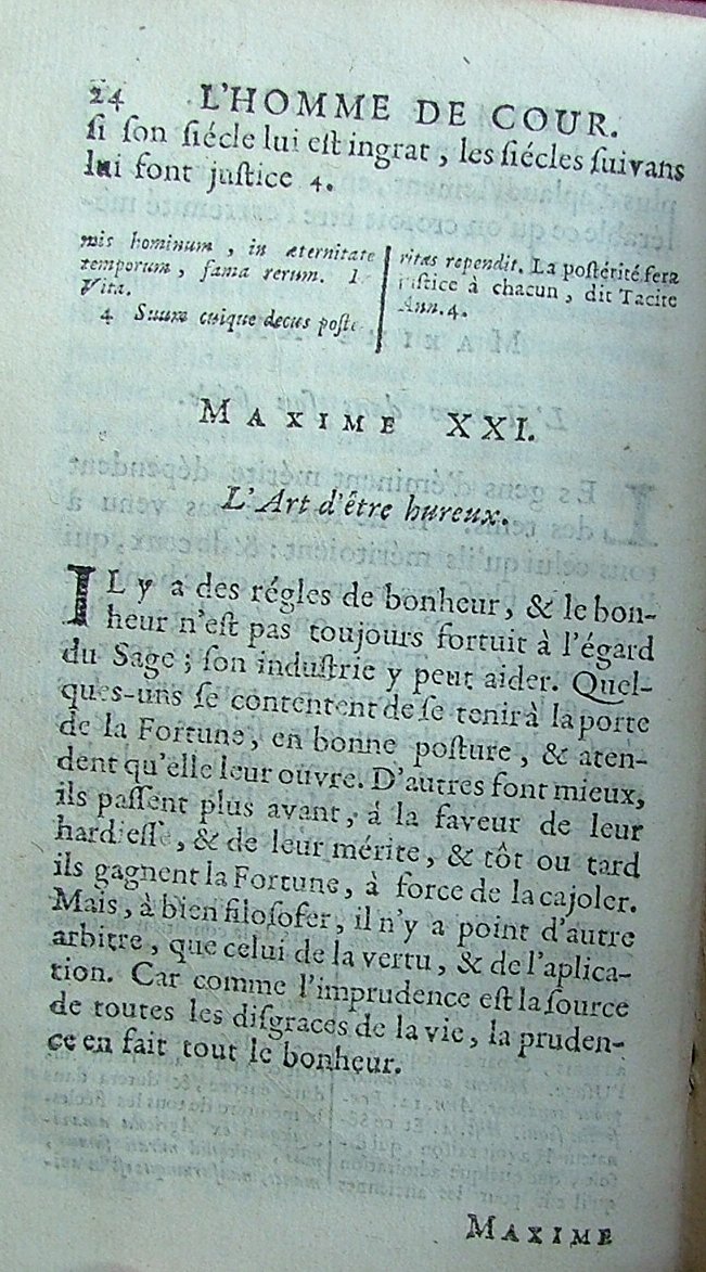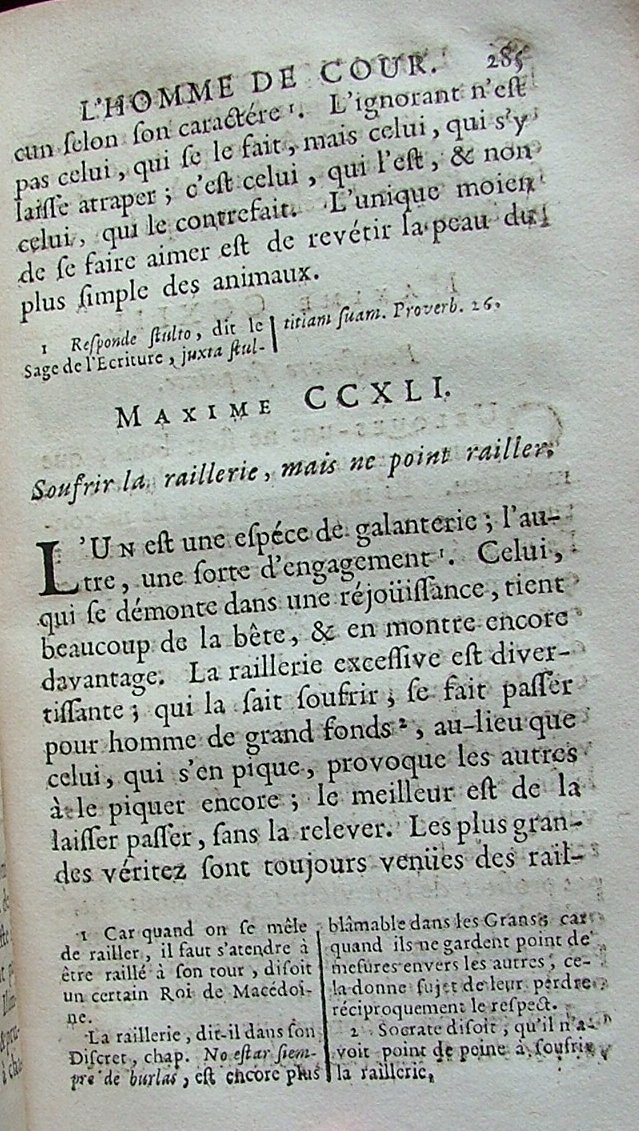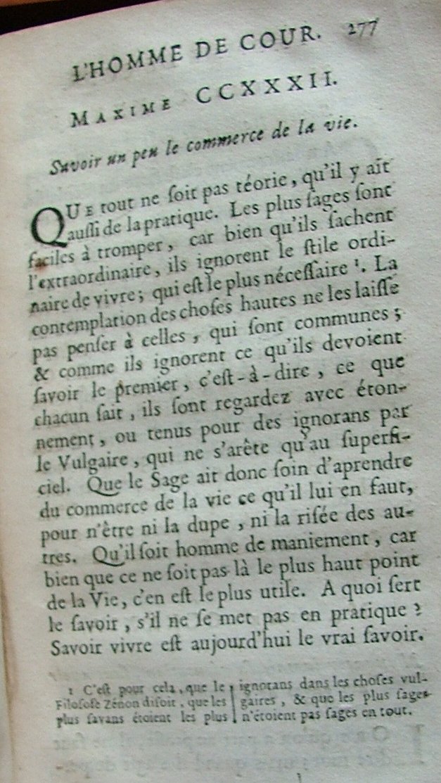 JPG images of L'Homme de Cour de Baltazar Gracian (French translation of the Art of Worldly Wisdom) Traduit & commente. Par le Sieur Amelot de la Houssaie, ci-devant Secretaire de l'Ambassade de France a Venise. Troisieme Edition, revue and corigee. A Paris. Chez la Veuve-Martin, and Jean Boudot, rue Saint Jaques, au Soliel d'or. M. DC. LXXXV (1685) Avec Priviledge du Roi