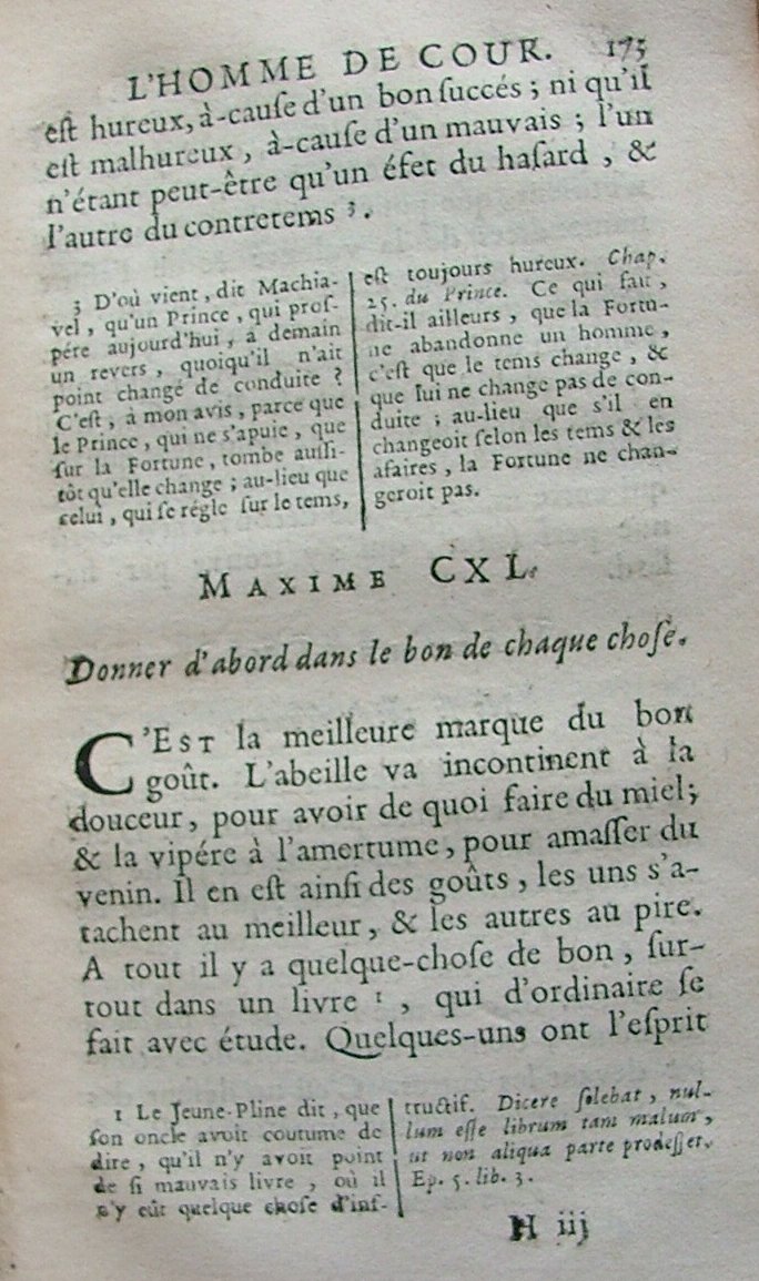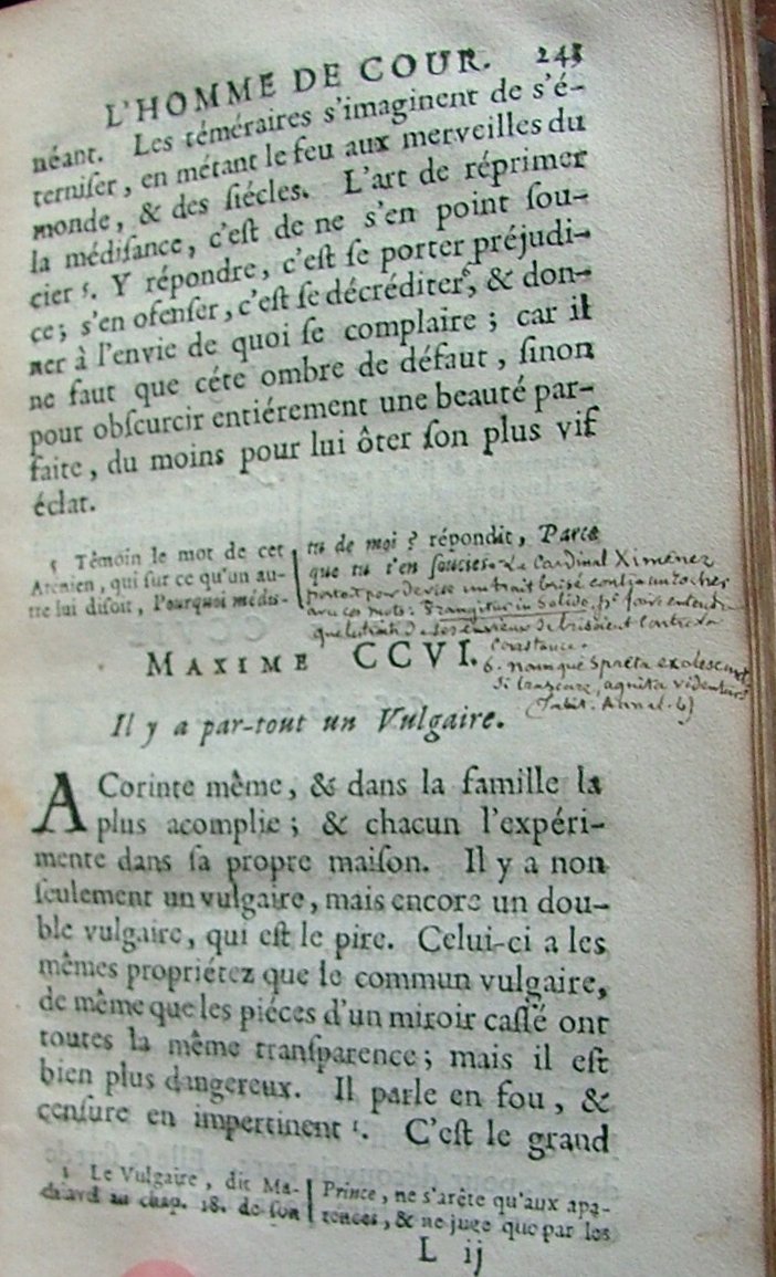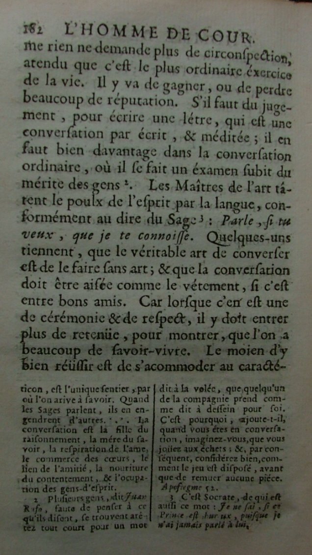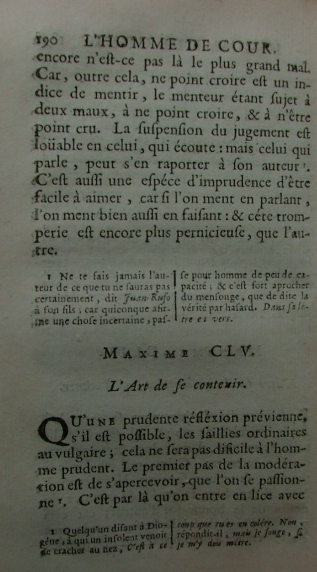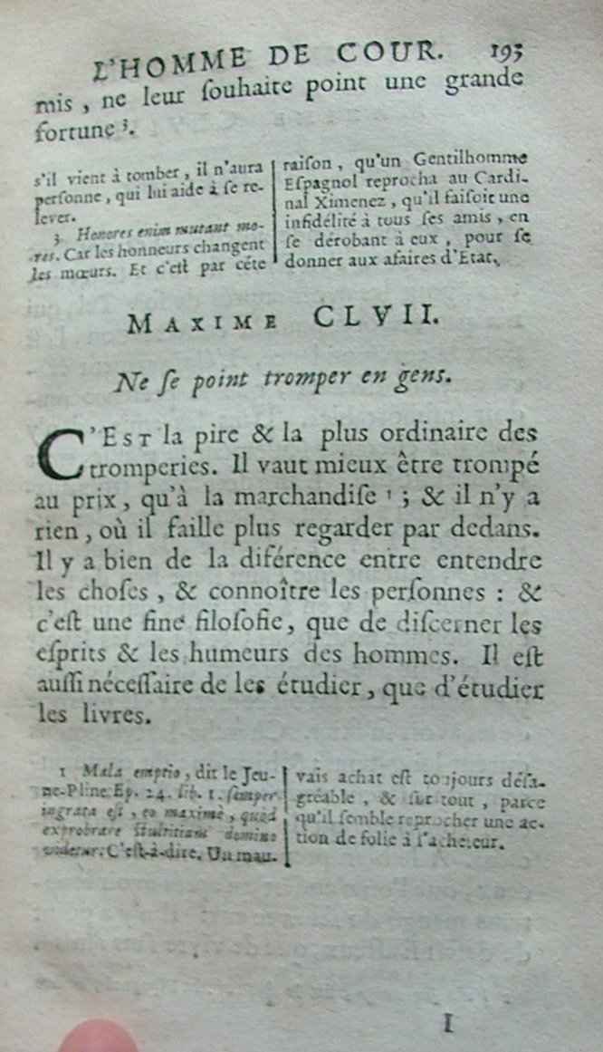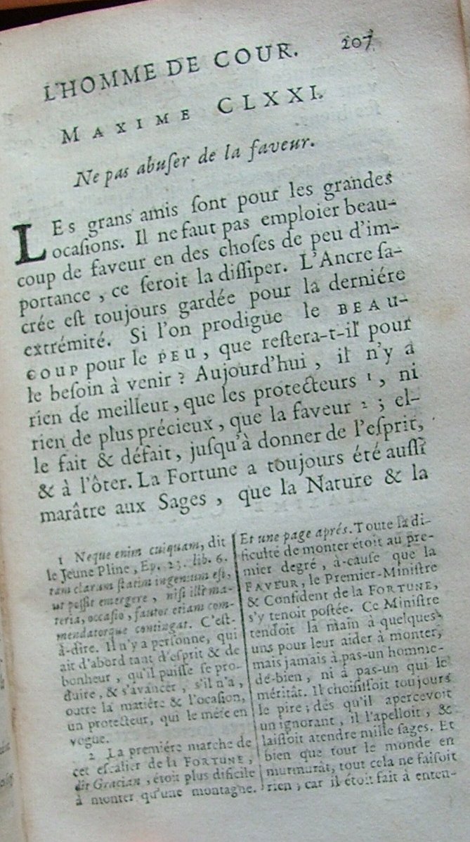 JPG images of L'Homme de Cour de Baltazar Gracian (French translation of the Art of Worldly Wisdom) Traduit & commente. Par le Sieur Amelot de la Houssaie, ci-devant Secretaire de l'Ambassade de France a Venise. Troisieme Edition, revue and corigee. A Paris. Chez la Veuve-Martin, and Jean Boudot, rue Saint Jaques, au Soliel d'or. M. DC. LXXXV (1685) Avec Priviledge du Roi
