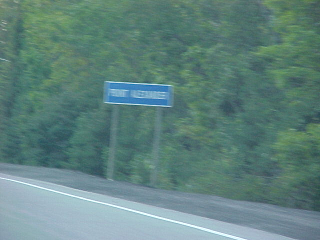 Sign for the KO Lodge on Highway 17 Sign for Point Alexander on Highway 17 Sign for Burke's Road on Highway 17 Sign for Bass Lake Road - leading to the KO Lodge Blurred sign for KO Lodge