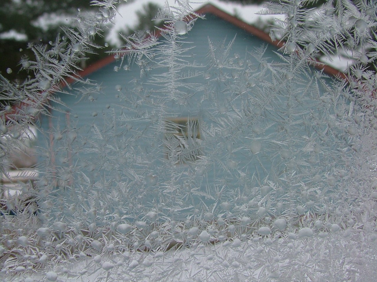 Winter Driveway, Christmas house lights, and window winter ice-crystal growth as fern and tree motifs; Winter scenes around Deep River - up to 14th December 2003