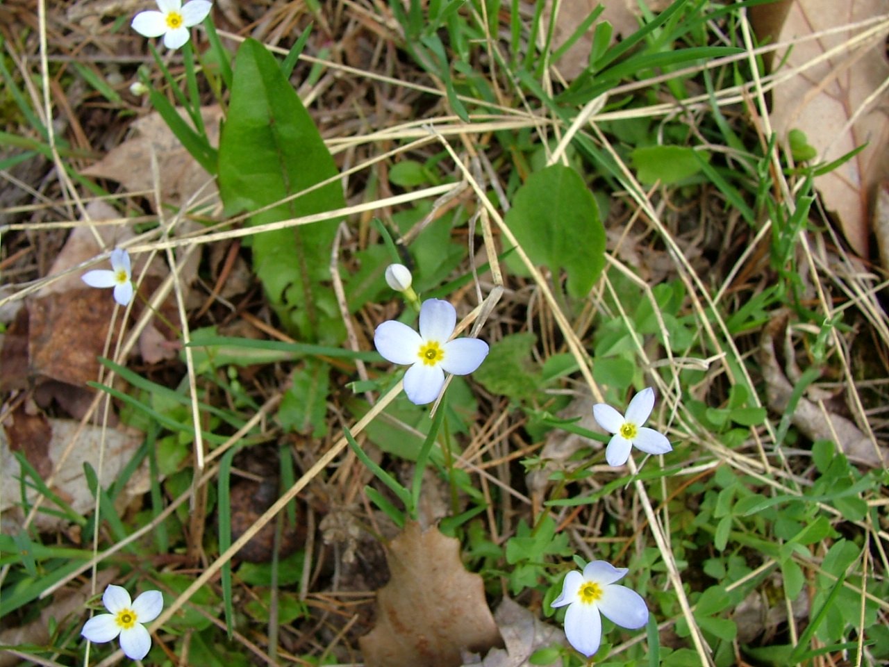 Violet Signs for Bogart Road and Little Pine Orchard Picnic Area Bluets (Houstonia caerulea) Bluets (Houstonia caerulea)