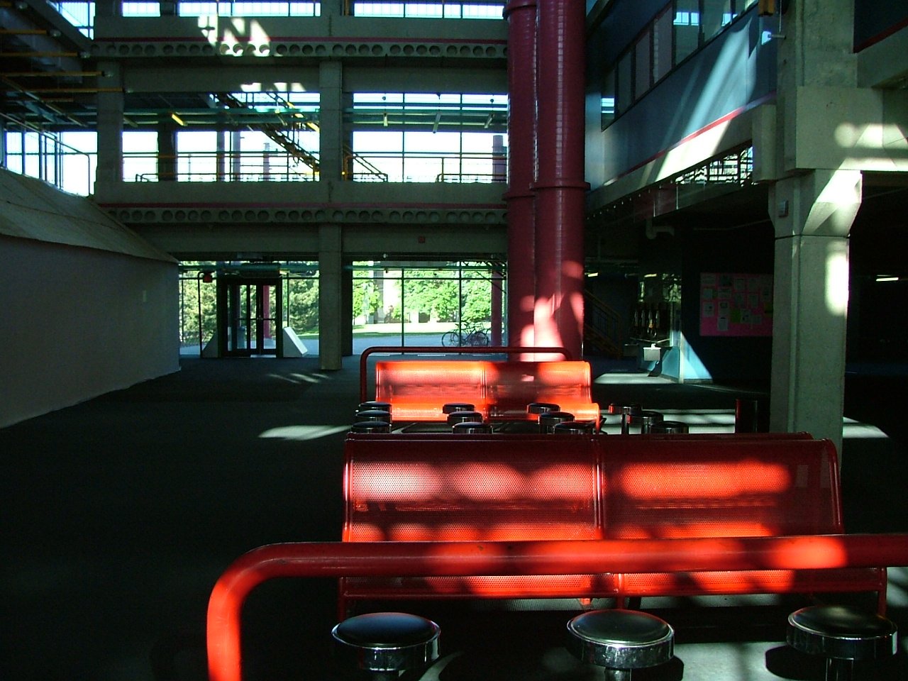 Walking towards the food mall outside the University Food mall outside the University Williams Coffee Pub: (GPS: N 43 deg 28.337; W 80 deg 32.313) Go out the Davis Center near the corridor to Tim Hortons: and C2 Chemistry is just ahead Looking back towards the Davis Center