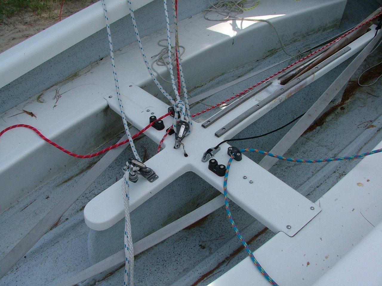 - Albacore mainsheet; and jibsheet rigging for single handed.