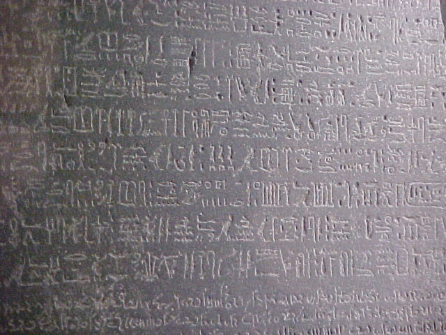 Demotic script on the Rosetta Stone Front of the Rosetta Stone