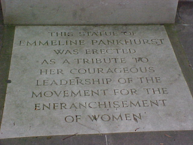 Memorial to Emmeline Pankhurst - 1858 to 1928 Memorial to Emmeline Pankhurst - 1858 to 1928