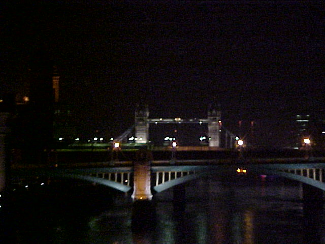 View towards Tower Bridge from Millennium Bridge at night View towards Tower Bridge from Millennium Bridge at night