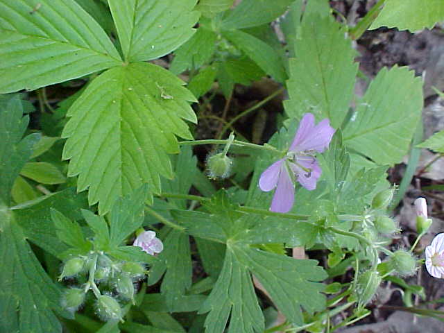 Wild Geranium; Crane's Bill (Geranium maculatum) Wild Geranium; Crane's Bill (Geranium maculatum) Garlic Mustard (Alliaria petiolata) Greater Celandine; Wartweed (Chelidonium majus) Greater Celandine; Wartweed (Chelidonium majus)
