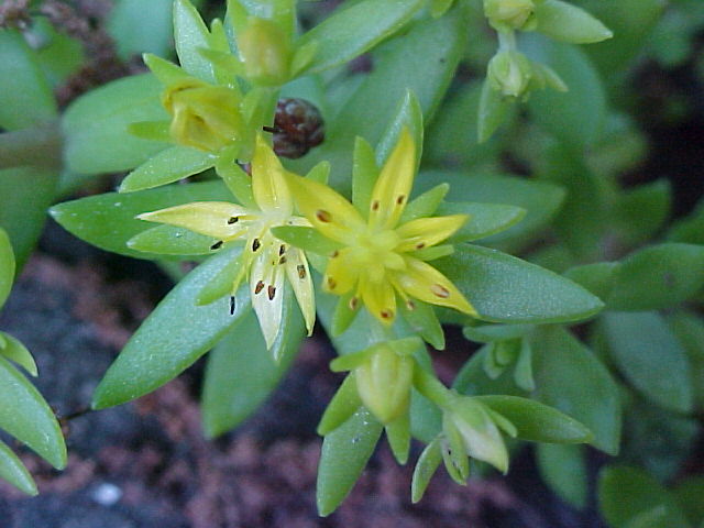 Lots of Stringy Stonecrop, Yellow Moss, Graveyard Moss (Sedum sarmentosum) - thanks to Gottfried Unger for correction: was misidentified as Wild Stonecrop (Sedum ternatum) and more afternoon wildflowers and scenes of LDEO, Columbia Univ., Palisades, N.Y., USA - 30th May 2001