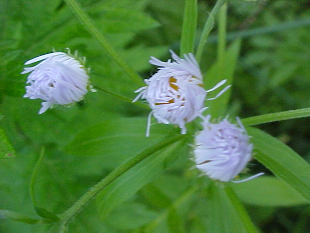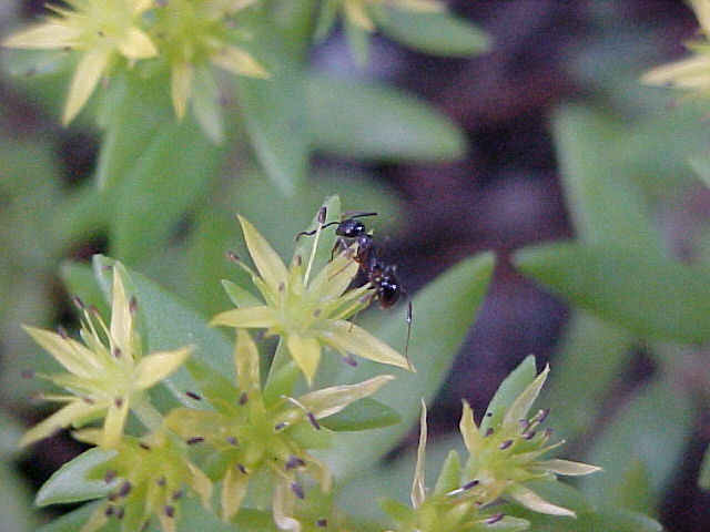 Twilight Daisy Fleabane (Erigeron annus); Ant and Stringy Stonecrop, Yellow Moss, Graveyard Moss (Sedum sarmentosum) - thanks to Gottfried Unger for correction: was misidentified as Wild Stonecrop (Sedum ternatum); wildflowers and scenes of LDEO, Columbia Univ., Palisades, N.Y., USA - 12th June 2001