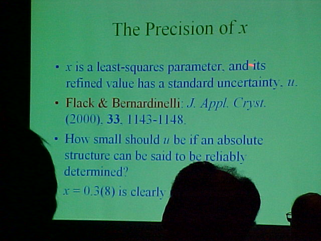 Simon Parson's talk (Precise Absolute Structure Determination for Light Atom Structures) - Bob Sparks Tribute Session at ACA Powder Workshop 2002, Sunday May 26th 2002 - 7 of 7