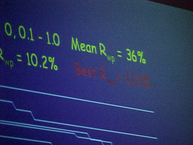 Hideo Toraya's structure solution of inorganics from powder diffraction talk and Maryjane Tremayne's talk on use of Differential Evolution for the solving of structures from powder diffraction data - Transaction Symposium : Crystal Structure Determination from Powder Diffraction Data chaired by Abraham Clearfield (TAMU) at ACA 2002, Tuesday May 28th 2002 - 2 of 7