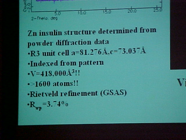 Michael Deem's talk on ZEFSA for structure solution of zeolites from powder diffraction, Rob Grothe's Powder Diffraction squared and Peter Stephens presents Bob von Dreele's Protein talk - Transaction Symposium : Crystal Structure Determination from Powder Diffraction Data chaired by Abraham Clearfield (TAMU) at ACA 2002, Tuesday May 28th 2002 - 1 of 7